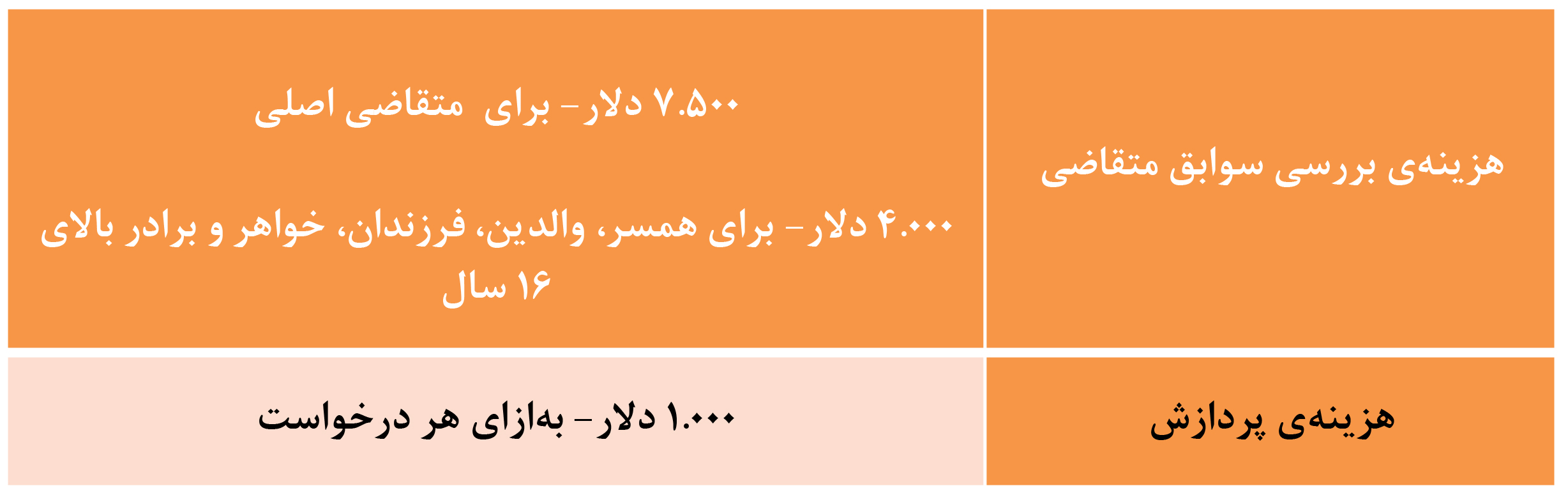از آنجایی که درخواست شهروندان این کشورها با دقت بیشتری توسط دولت بررسی میشود، در نتیجه مبلغی جهت بررسیهای لازم از شهروندان این کشورها گرفته خواهد شد.