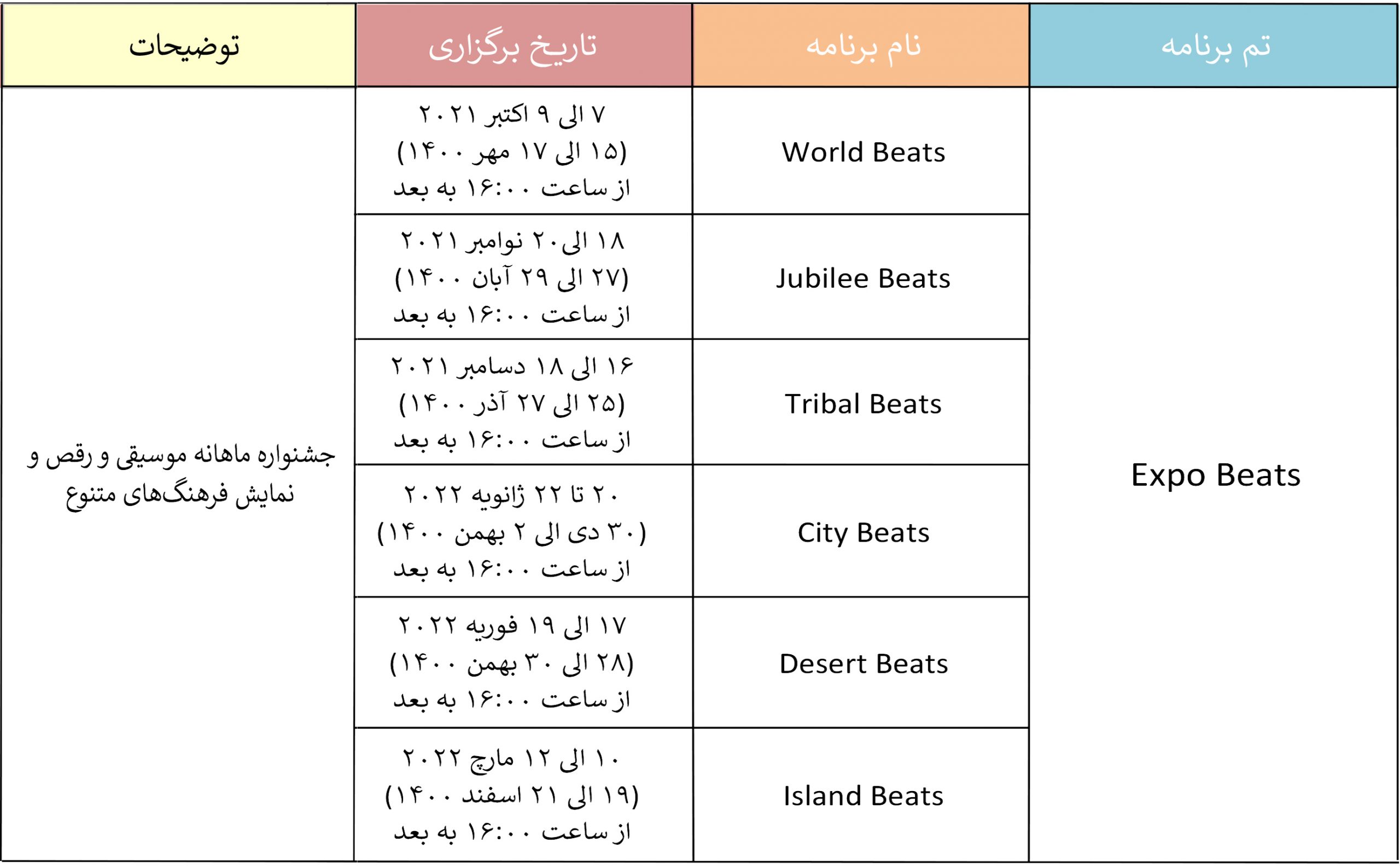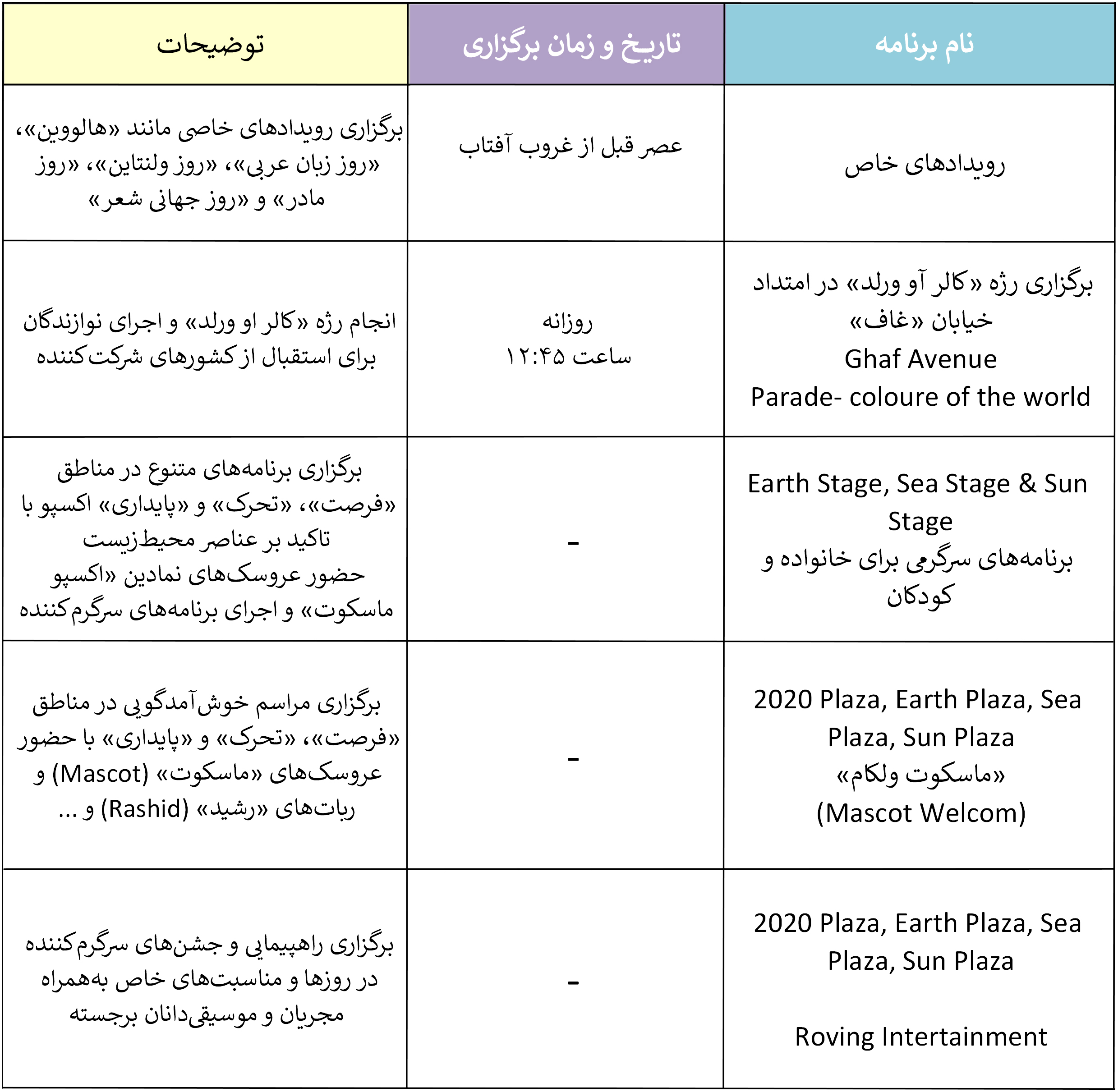 رویدادهای روزانه اکسپو ۲۰۲۰ دبی