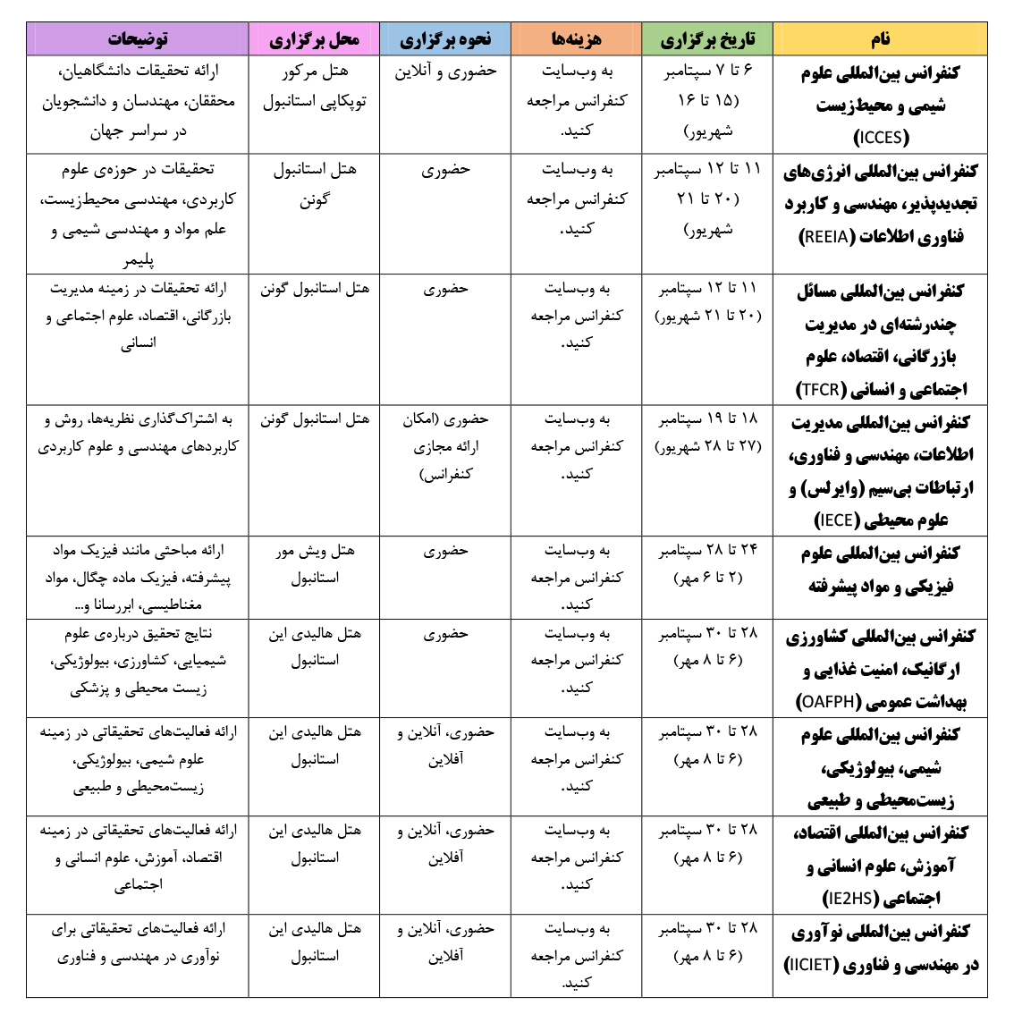 فهرست کنفرانس های استانبول در ماه سپتامبر: