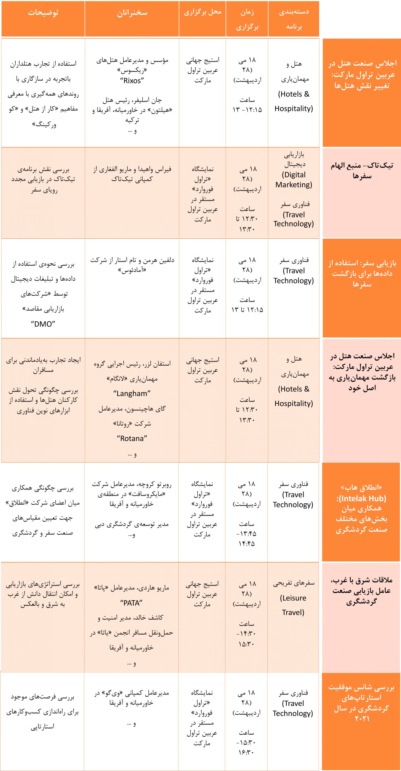 برنامه سومین روز عربین تراول مارکت در ۱۸ می ۲۰۲۱