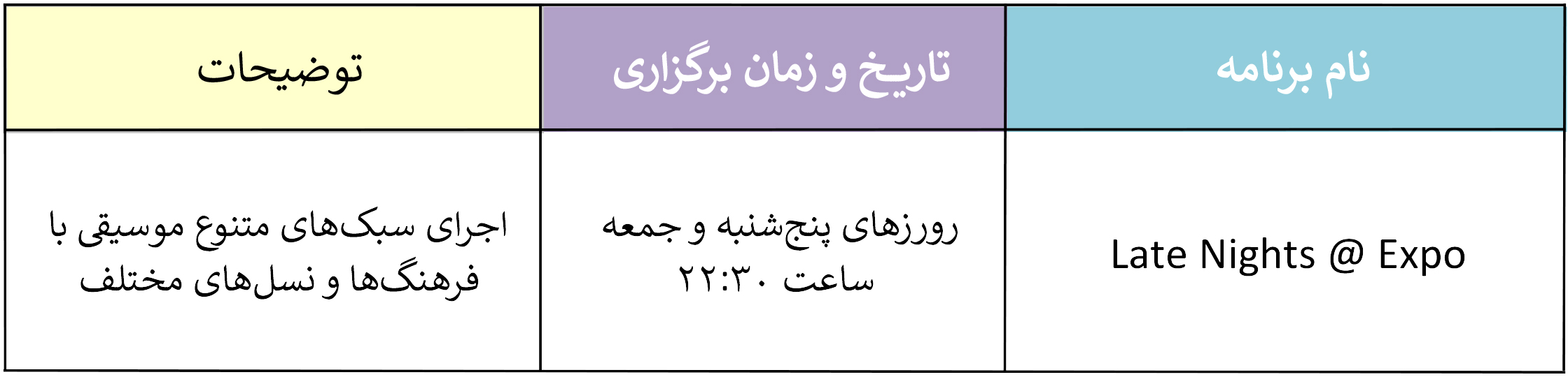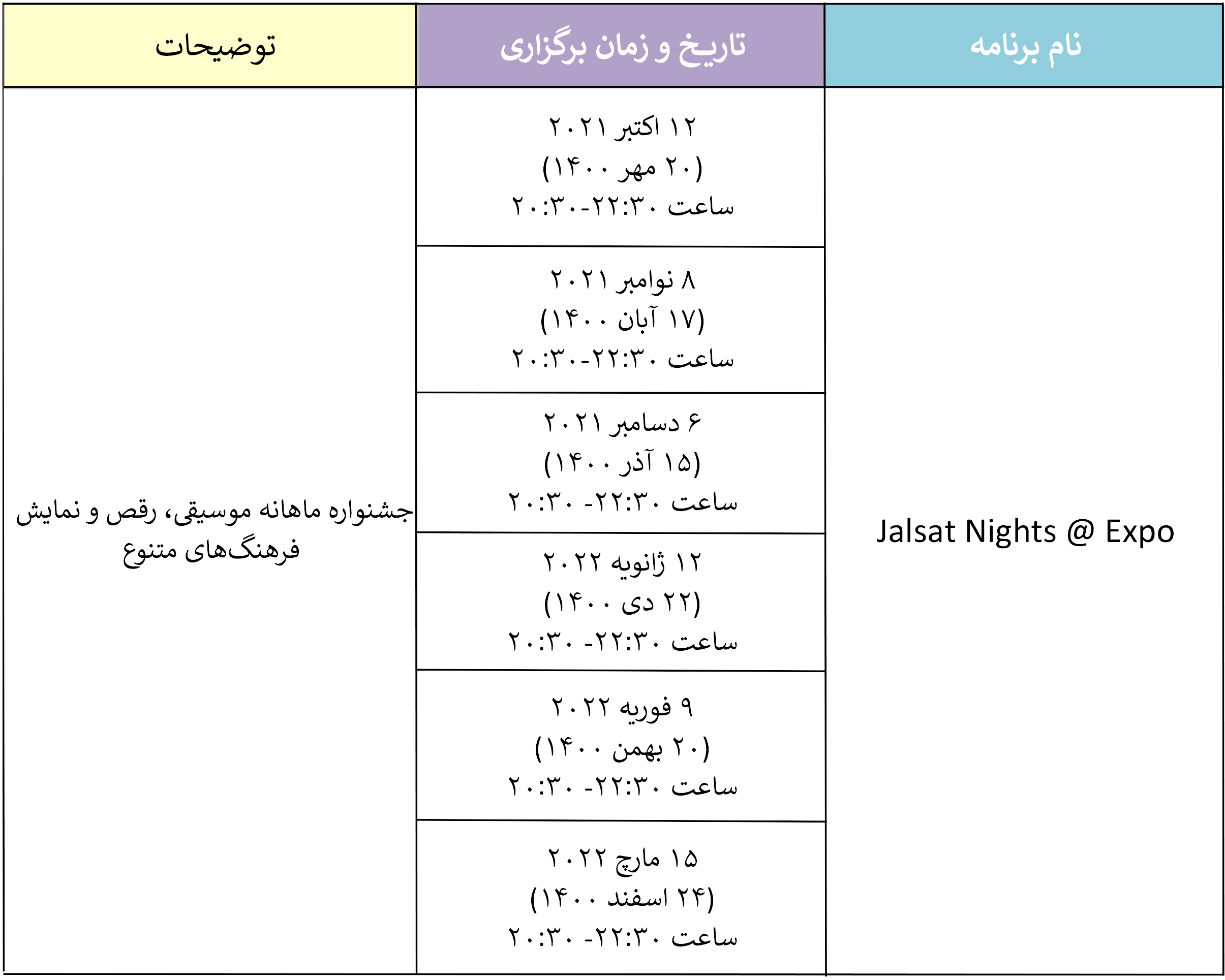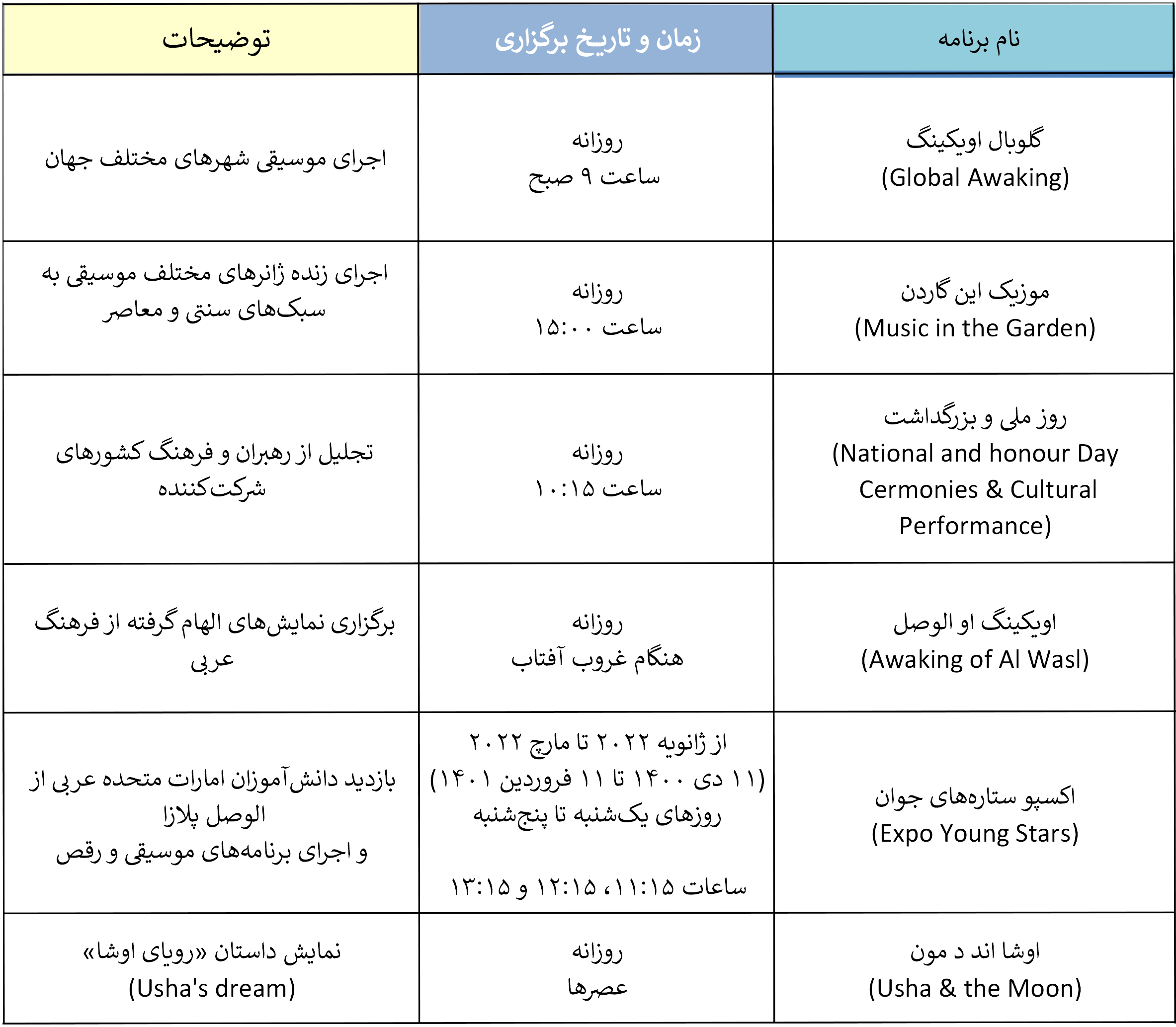 رویدادهای روزانه اکسپو ۲۰۲۰ دبی