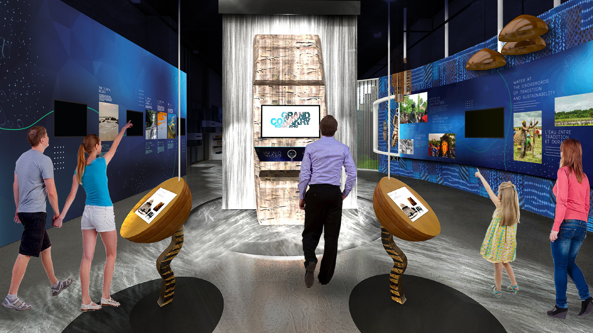 پاویون گینه، مرکزی برای بررسی راهحلهای مربوط به مدیریت و حفظ آب است. این پاویون علاوه بر نمایش پایداری، پتانسیل بازیافت انرژیهای پاک و ارائه راهحلهای نوآورانه، فضاهای مخصوصی با جعبههای قصهگو را به کودکان اختصاص داده است.